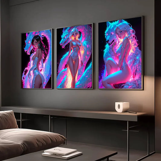 Sexy Anime Girl Canvas Painting, Hot Girl with Sunglasses Poster Canvas Prints, Coquette Room Decor, Girly Wall Art For Home